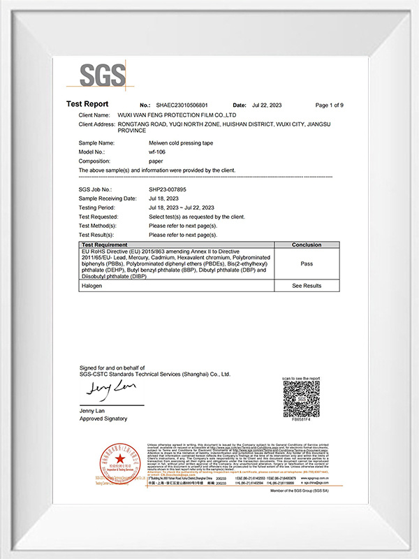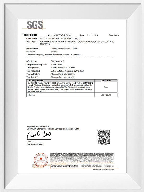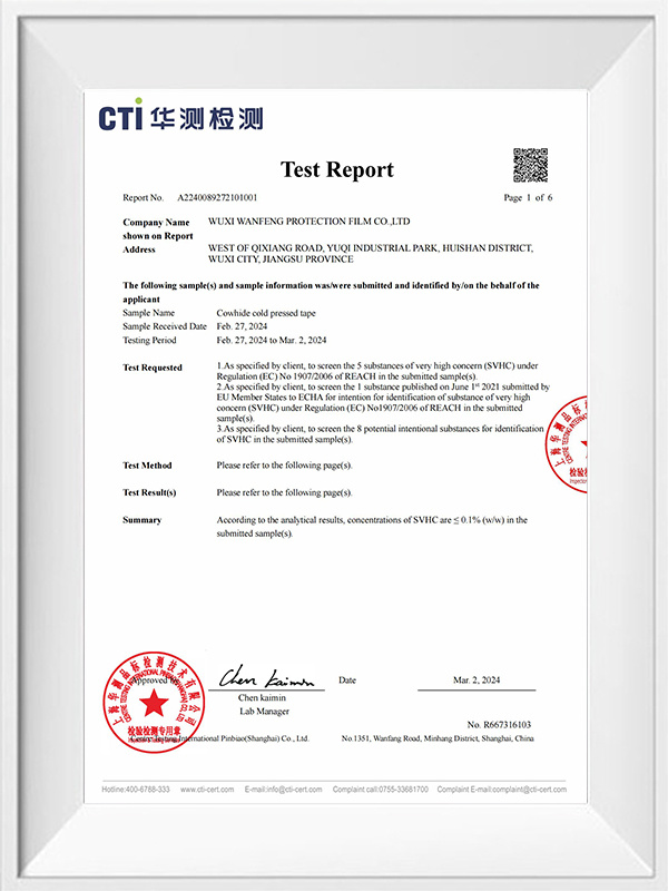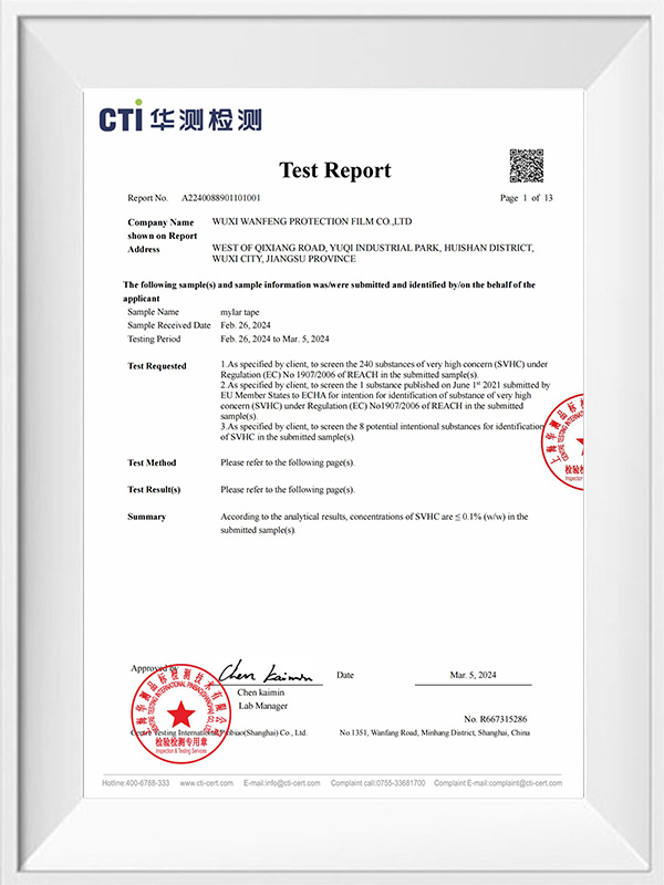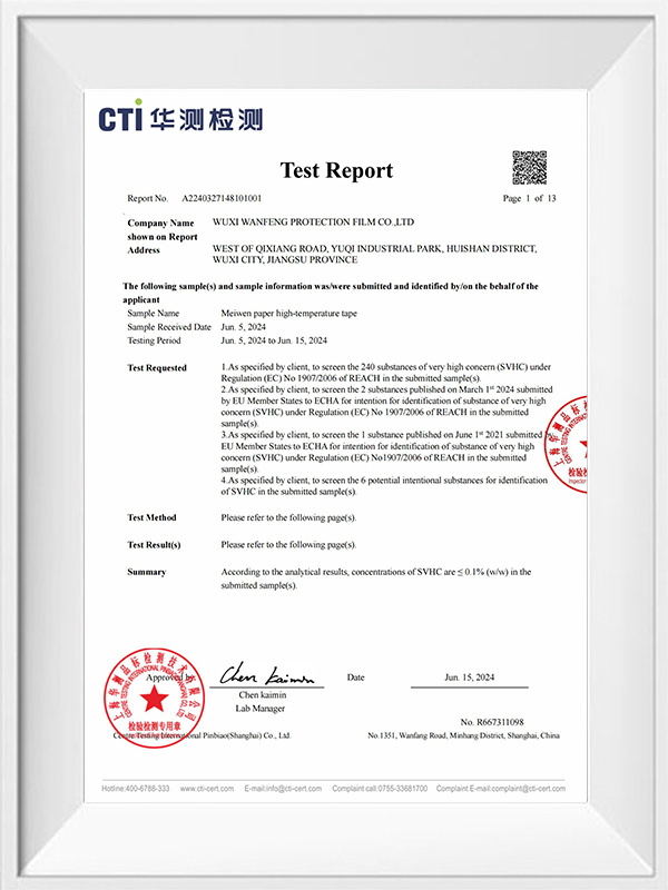 Raport de testare REACH pentru bandă de temperatură înaltă PI
